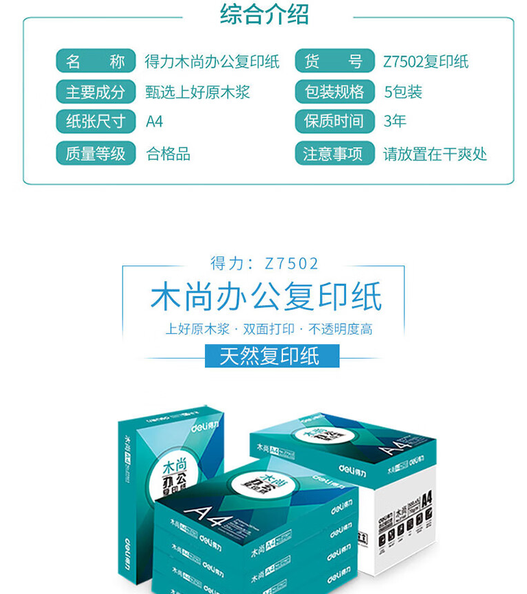 參數(shù) [品牌] 得力 [型號(hào)] A4 復(fù)印紙 [毛重] 70g